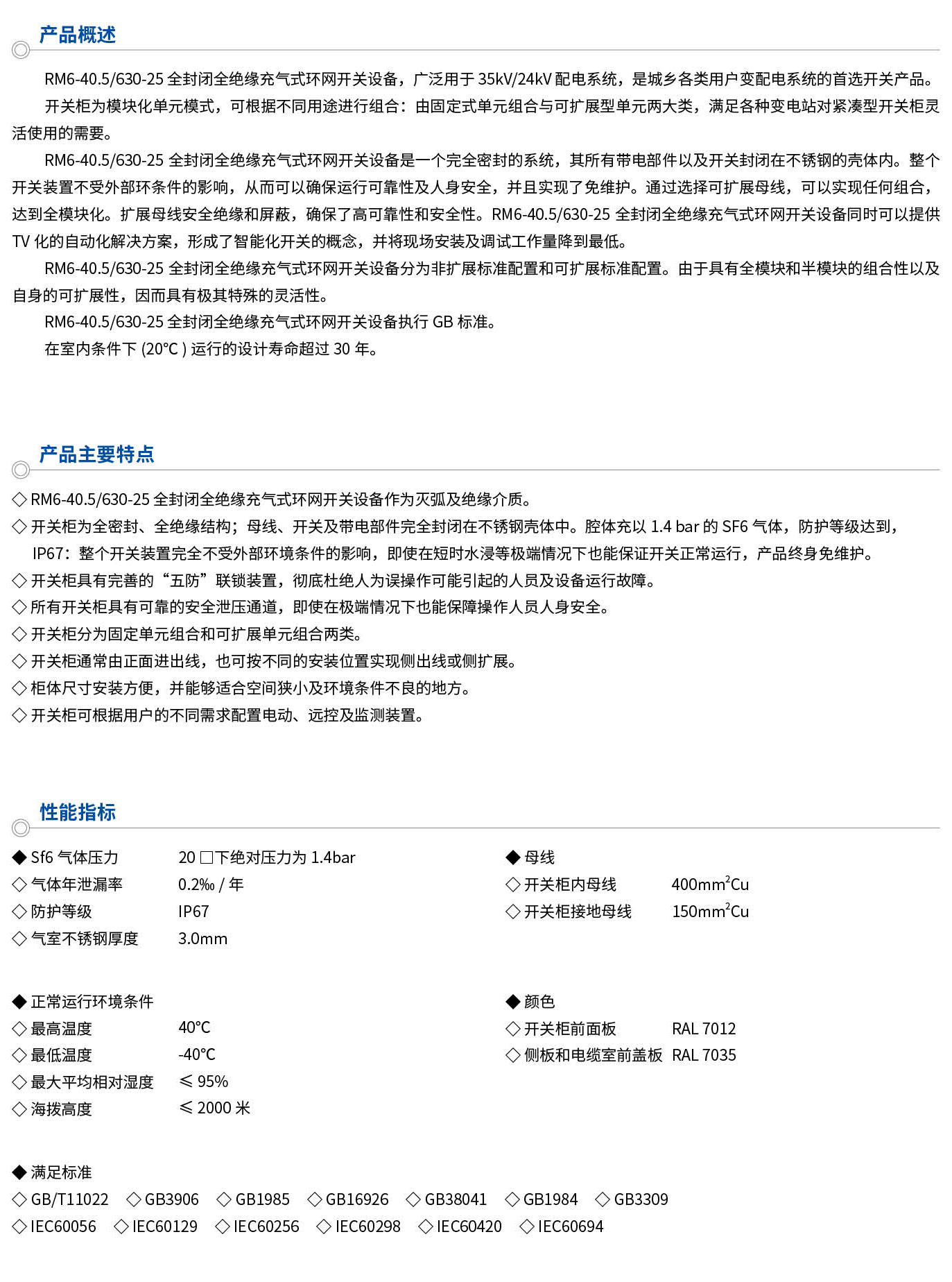 RM6-40.5/630-25全封闭全绝缘充气式环网开关设备